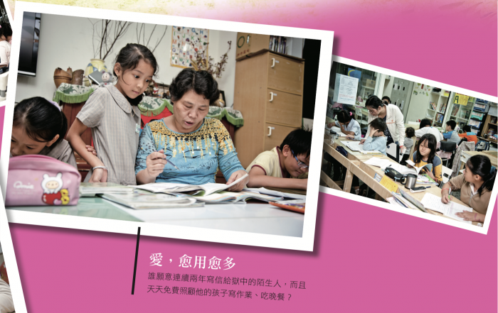 如果連續兩年定期寫信給獄中的陌生人,天天免費照顧他的孩子寫作業、吃晚 餐,並且鼓勵他的老母親堅強忍耐,您願意嗎? 絕大多數人可能會因為代價太高、責任太重而婉拒。 但是新店喜樂浸小太陽課後陪讀班的美月老師不但主動去做,還一路陪伴這個家庭長達兩年。現在,祖孫三代順利團圓,美月老師依然天天守護著孩子和大人的心靈。 「看著孩子每天一點一點的進步,是我 最快樂的事,」 美月老師微笑著表示。